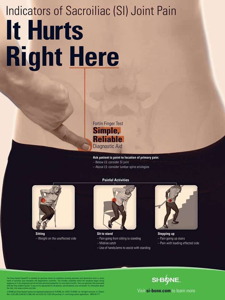 SI joint fusion may be helpful for patients with severe pain in the lower back, hip, or pelvis. This pain can interfere with daily activities like walking, sitting, and standing, and may limit mobility. Nonsurgical treatments are available to help manage symptoms, but if these treatments do not provide adequate pain relief, surgery may be an option. Learn more about SI Joint Fusion.